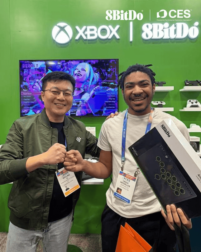 八位堂展台位于美国拉斯维加斯会议中心中央馆,展位号#15641。在整个CES 2026展会期间,现场人流如织气氛热烈。众多玩家、媒体和行业专家驻足体验八位堂的新品与其他经典外设。现场试玩区排起长队打卡,以及参与街霸挑战赛,玩家对3E精英手柄的模块化自定义设计与精准操控反馈赞不绝口,对其TMR摇杆的稳定性与无线充电功能表现出浓厚兴趣。